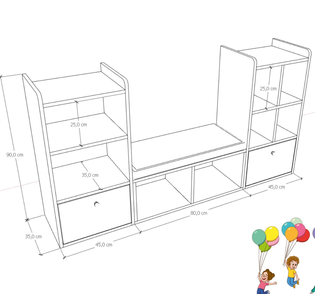 1. Sınıf Hammadde İle Üretim : Üretimde kullanılan tüm malzemeler çevre ve çocuk sağlığı standartlarına uygundur. Ürünlerimiz 18 mm kalınlığında halk arasında Suntalam-Suntalem olarak bilinen, sağlığa zararsız, kanserojen madde içermeyen Avrupa E1 kalite standartlarında yonga levhalardan üretilmiştir.