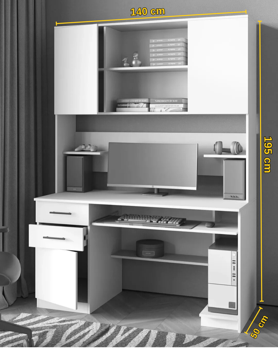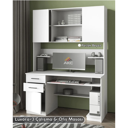 140 cm genişlik, 195 cm toplam yükseklik ve fonksiyonel depolama alanlarıyla tasarlanan Luxora-3 Çalışma & Ofis Masası, hem düzen hem konfor sunar.