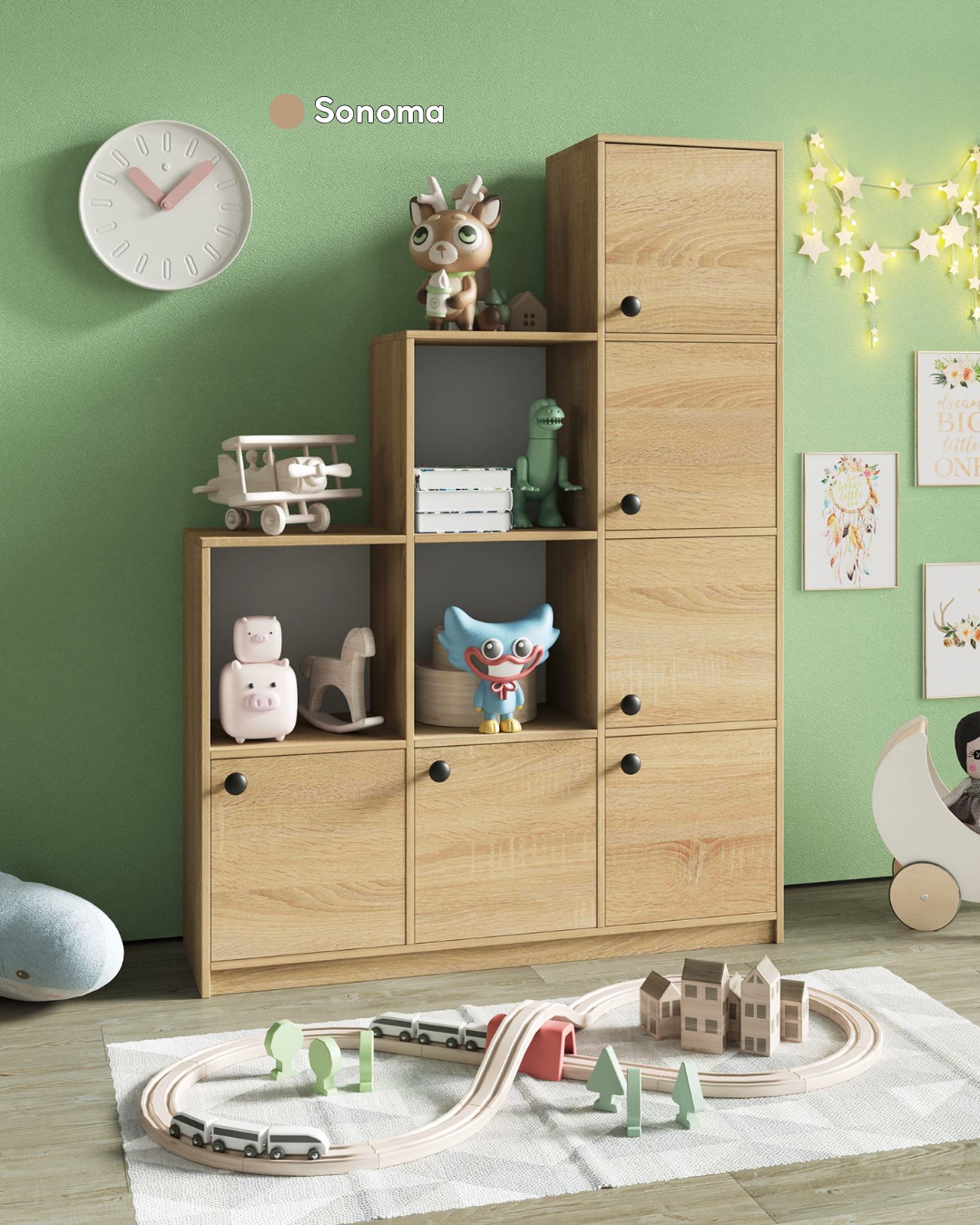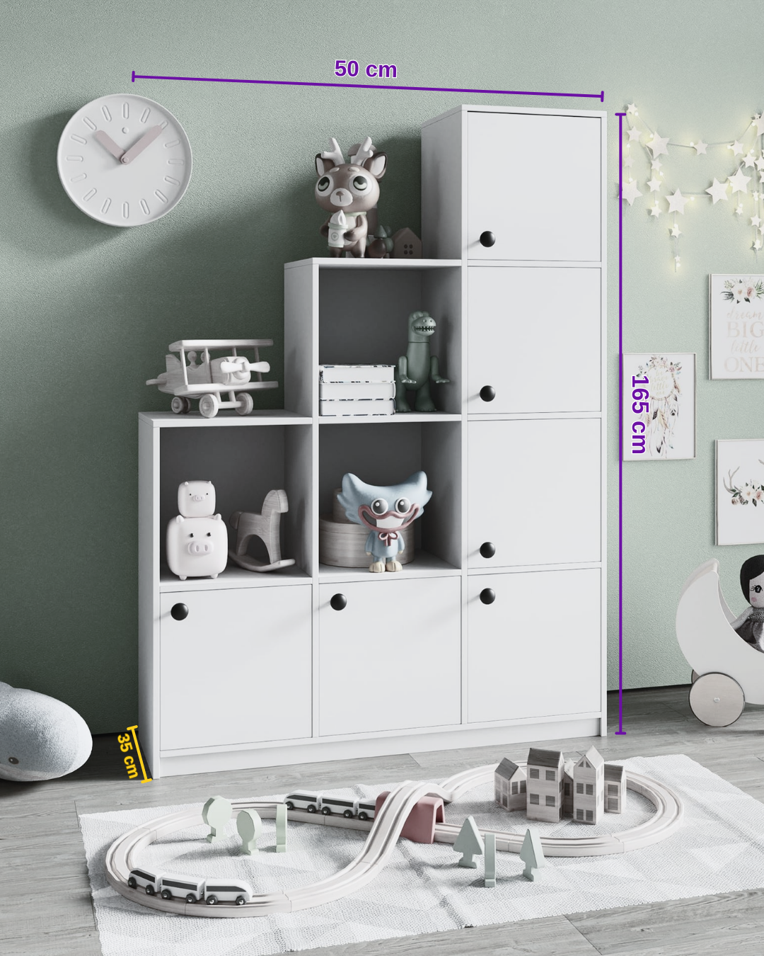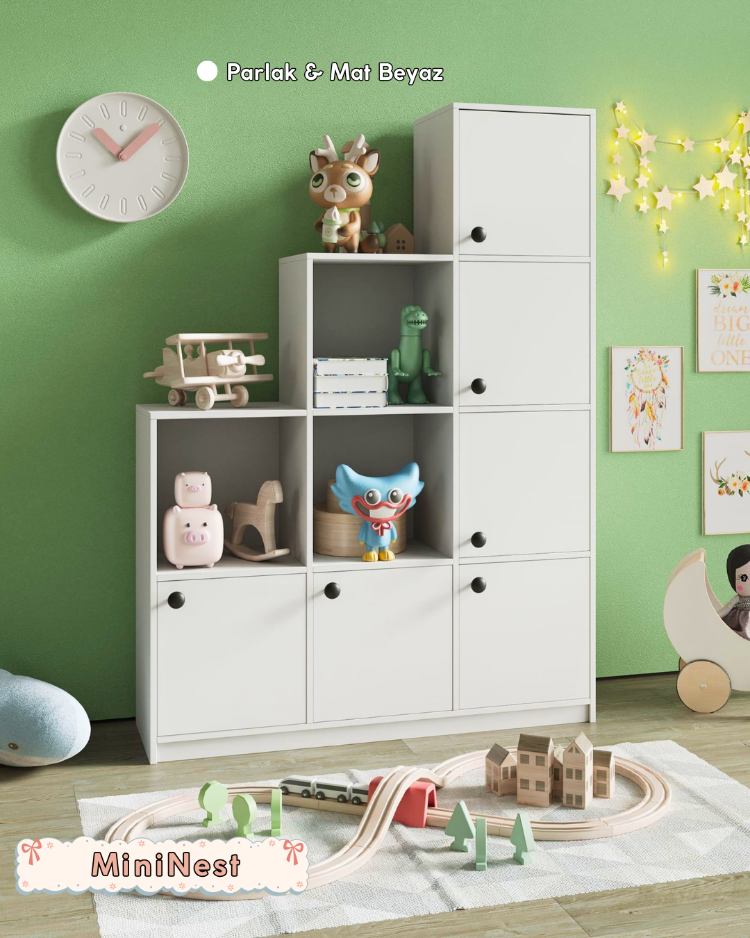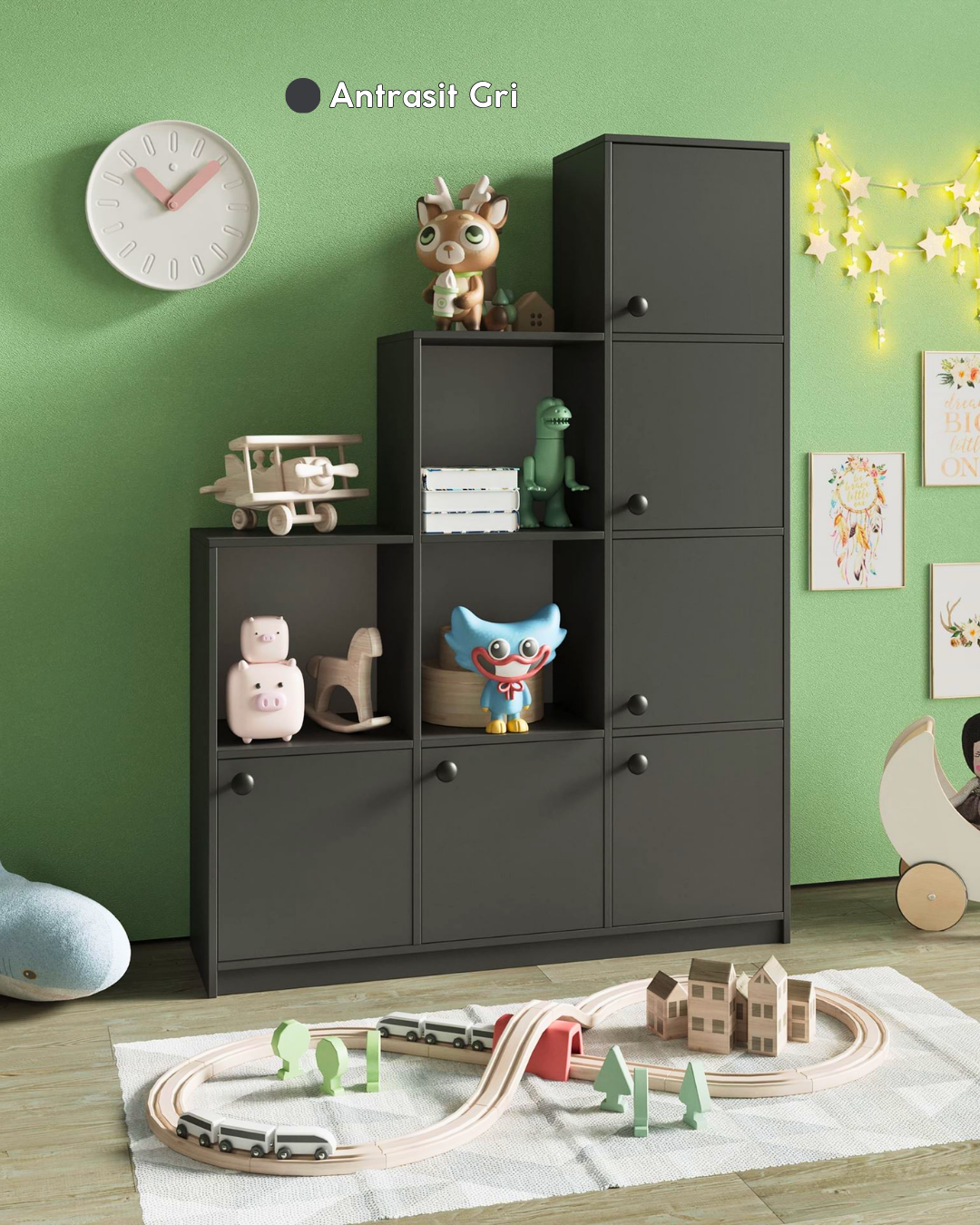 Fonksiyonel bölmeleri sayesinde oyuncaklar, kitaplar ve aksesuarlar artık kolayca düzenlenir.
