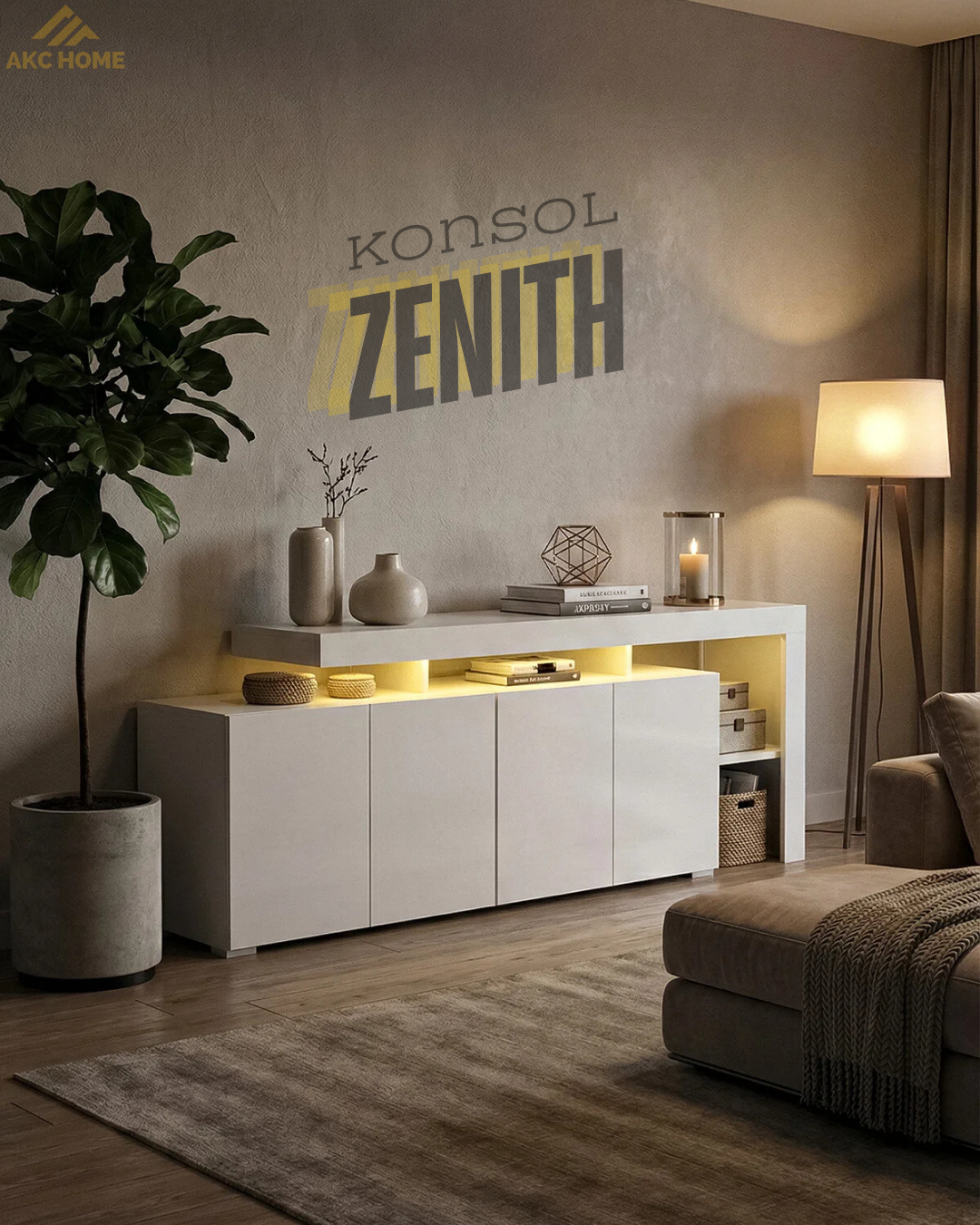 ZENITH Konsol; salon, oturma odası ve geniş antre alanlarında hem fonksiyonel hem estetik bir tamamlayıcı olarak öne çıkar.